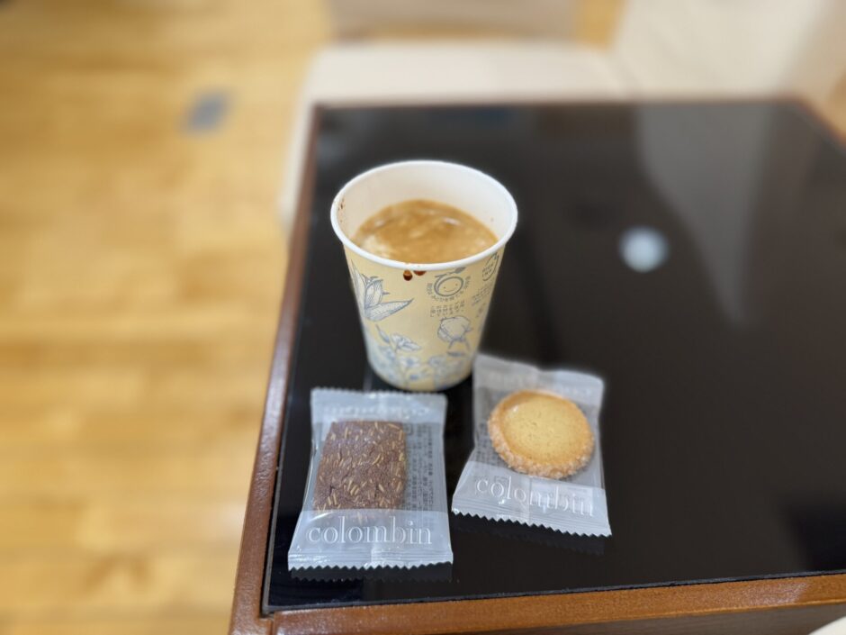 病院で用意されていた焼き菓子とコーヒーで、検査結果が出るまでのんびり休憩しました♪✨