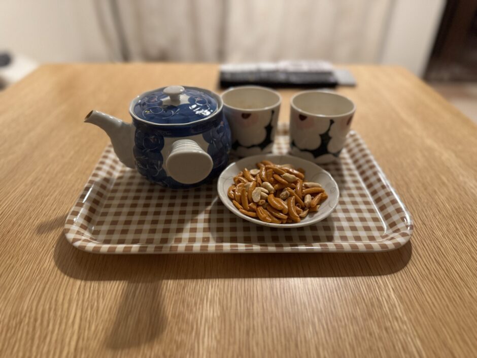 温かいお茶を淹れて、テレビをぼんやり見ながらポリポリ…。そして二人だけの時間を楽しみます♪